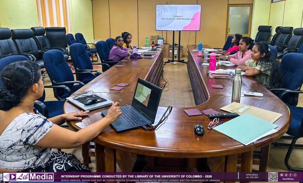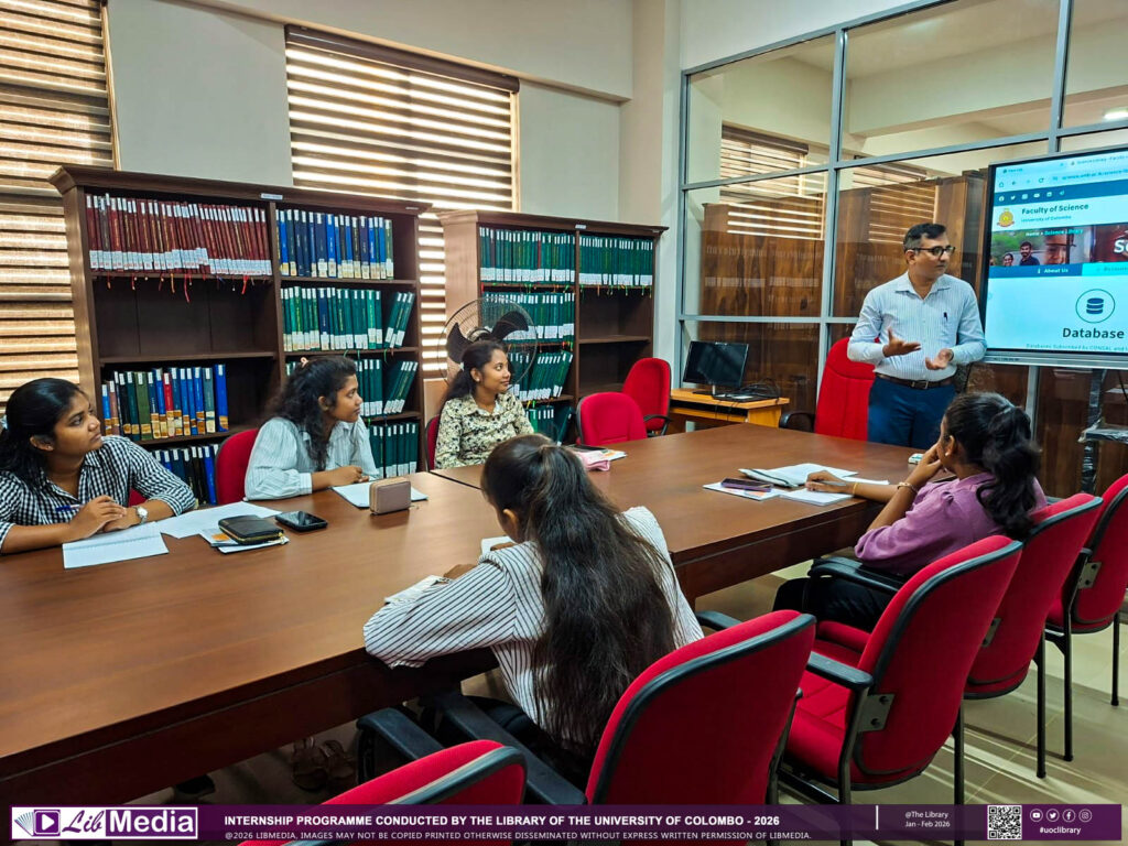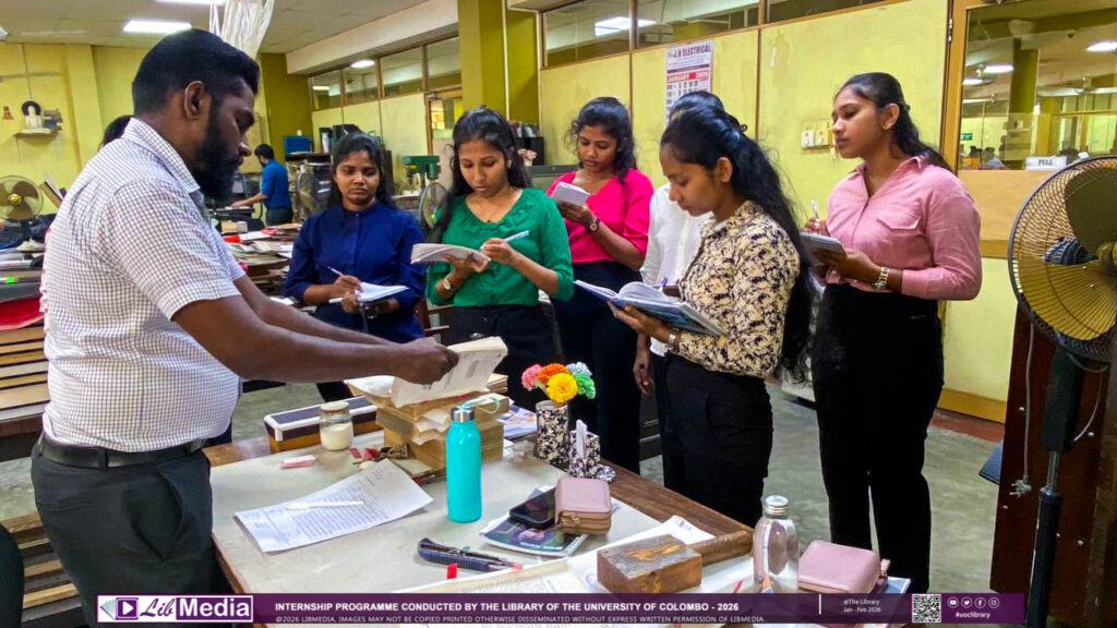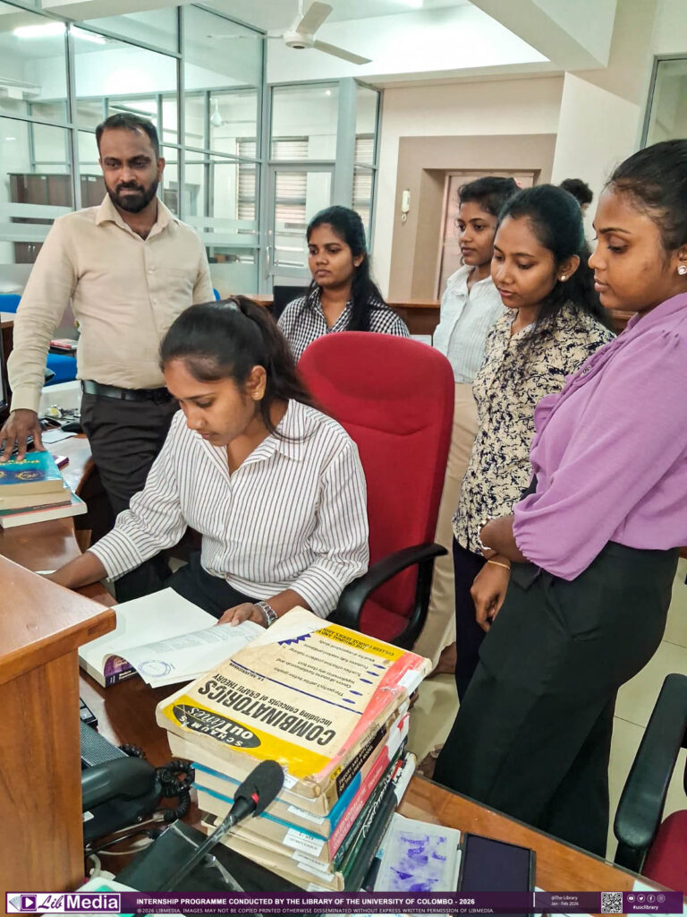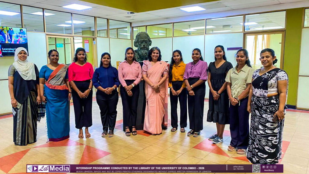 The Library of the University of Colombo successfully conducted two internship programmes for undergraduate students from the University of Kelaniya and the University of Colombo from December 2025 to February 2026. The programme was designed to provide practical exposure to the core functions of an academic library. During the training period, the interns worked closely with the library staff, receiving guidance and professional insights into library services and operations.