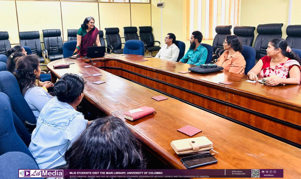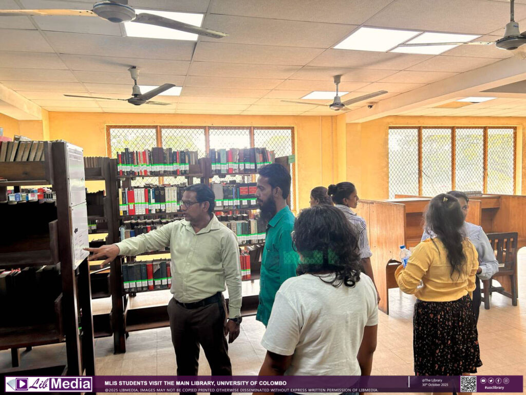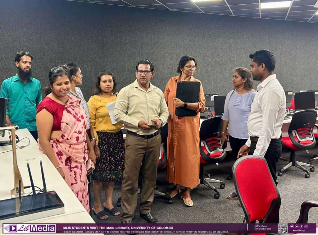 The visit introduced the new students to the Library’s facilities, services, and resources, while providing valuable insight into the academic library environment and professional practices. The tour was guided by Dr. Chiranthi Wijesundara, MLIS Programme Coordinator, who offered an overview of the Library’s key services and facilities.